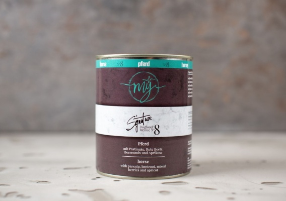 Naturalna mokra karma dla psa oparta na 75% mięsa z koniny, uzupełniona pasternakiem, burakiem oraz owocami. Monobiałkowa, bezzbożowa receptura odpowiednia jako pełnoporcjowy posiłek dla dorosłych psów.